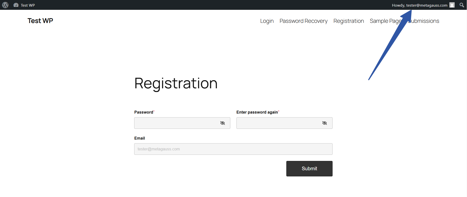 User will be able to see and submit registration form while in logged-in state. In logged-in state, email field will display pre-populated with registered user email address, and form will be of contact type. It means on submission while the form data will get saved to database, the account itself won’t be created.
