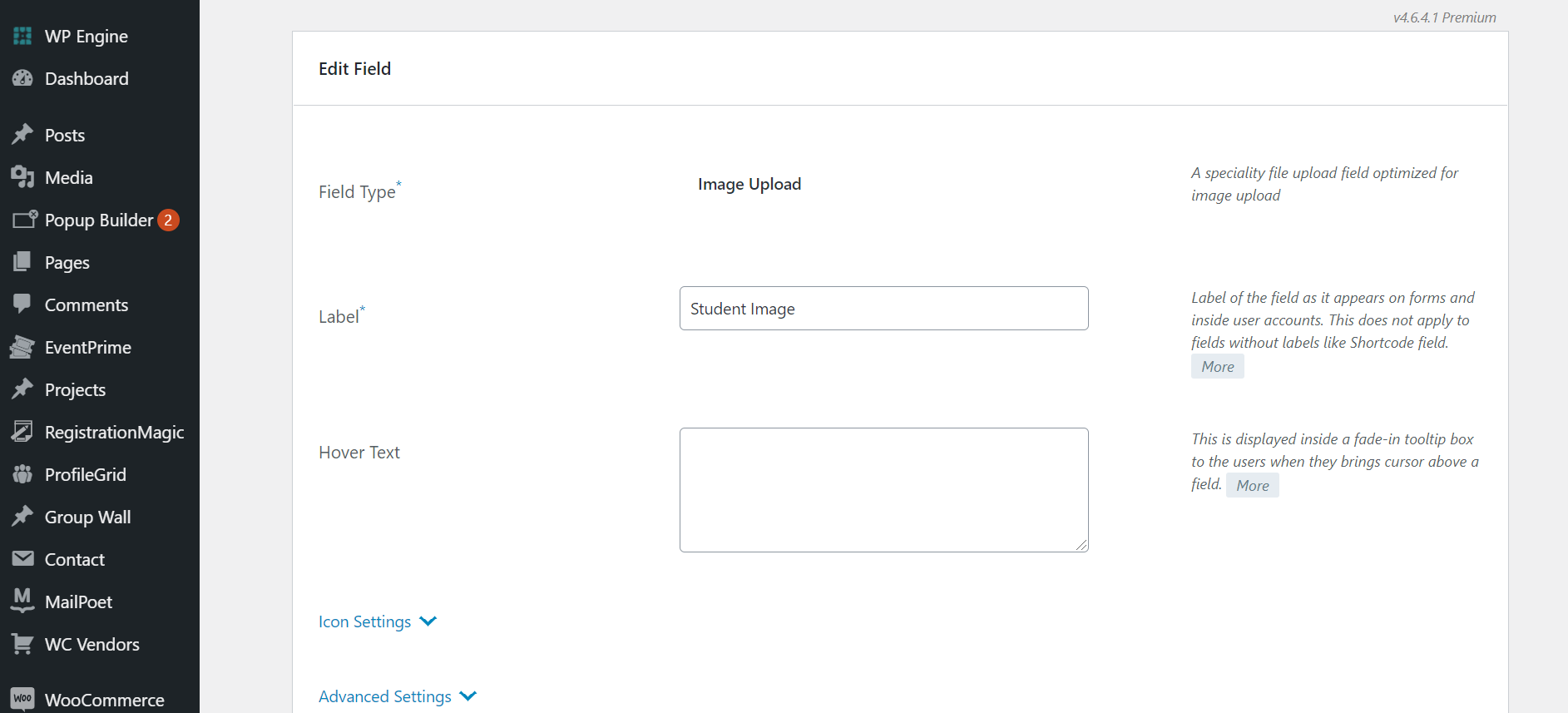 Add the Image Upload field by clicking the Image Upload on the fields page.