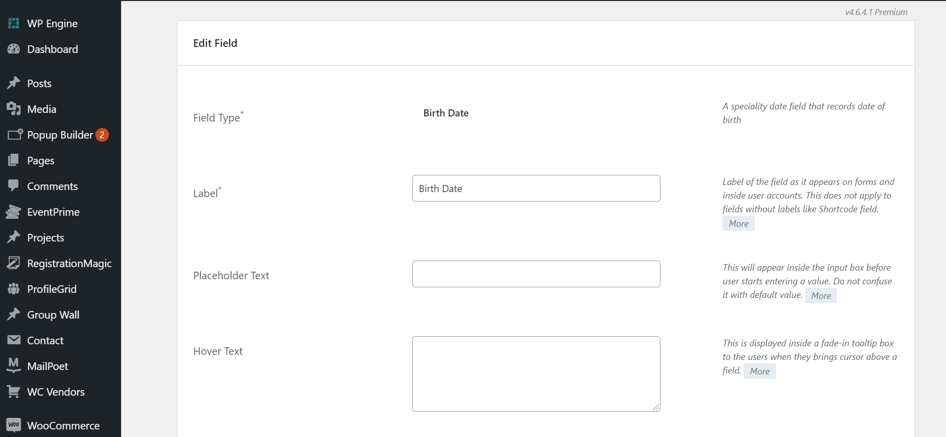 Add the Birth Date field by clicking the Birth Date on the fields page.