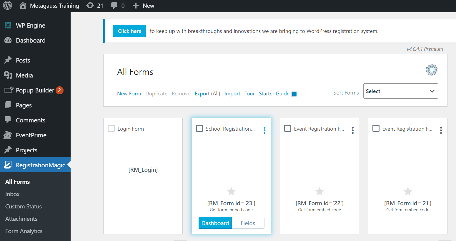 Step 1: From the dashboard, click on the RegistrationMagic option.