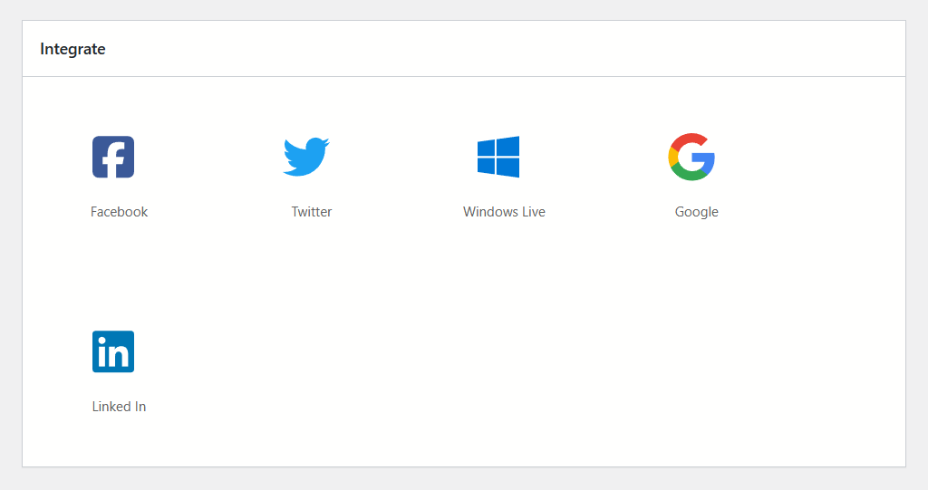 - Currently, we support - Facebook, Twitter, Microsoft, Google, and LinkedIn.