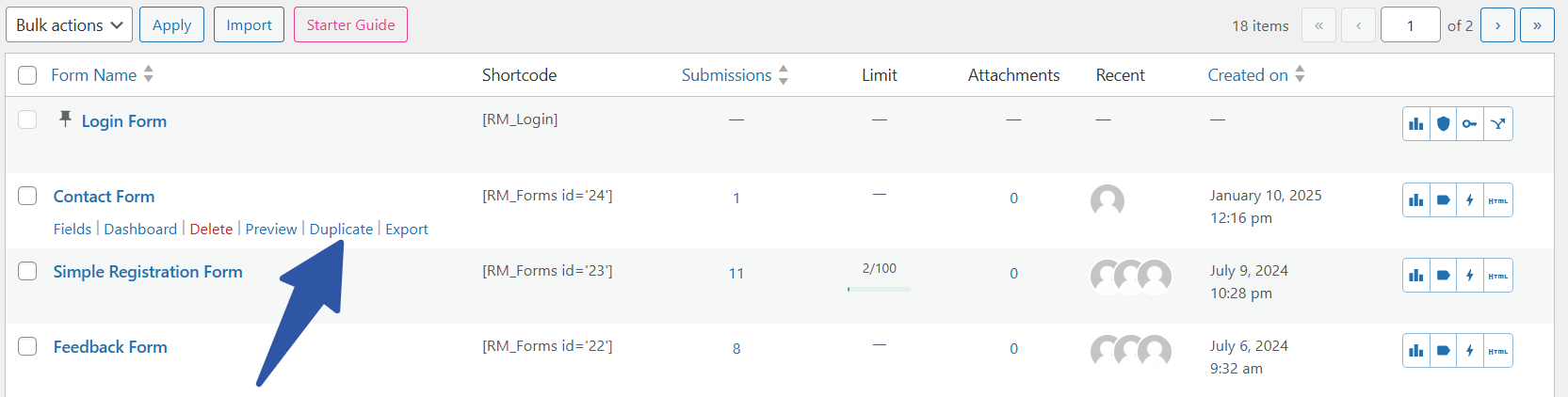 Duplicating WordPress registration forms offers a quick start feature to use existing forms as templates for the new ones. It comes in handy when the requirement is to create similar forms with variations.