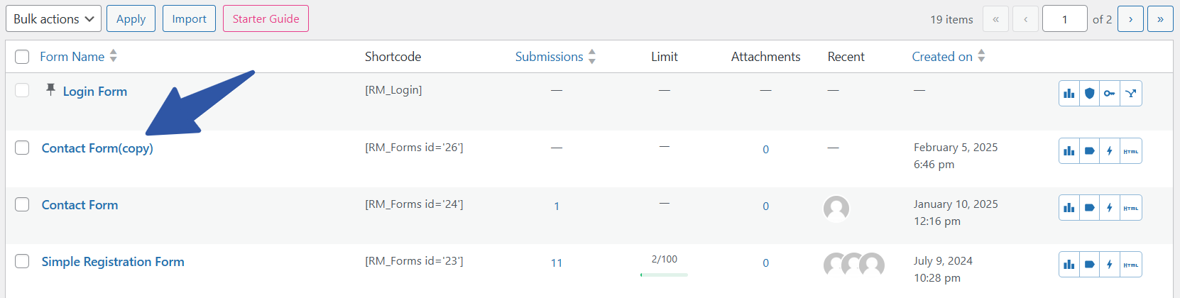 On the All Forms page, the duplicated form is distinguishable by its name that will contain “(copy)” suffixed to the original form’s name.