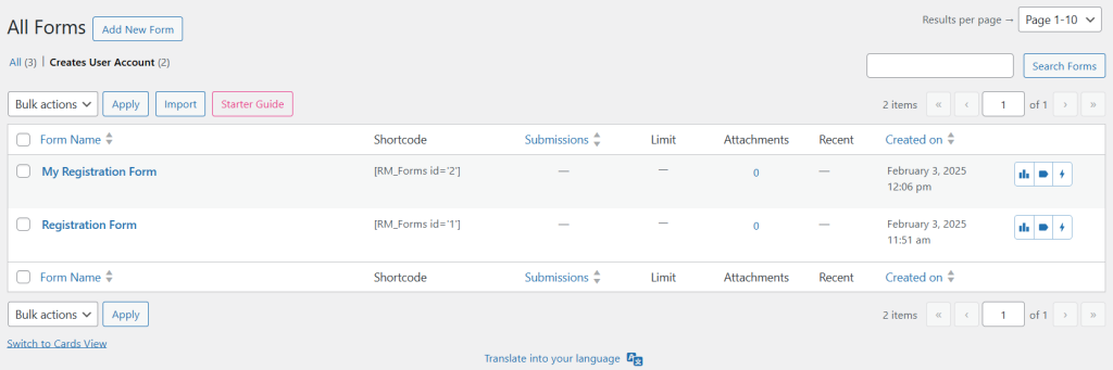 Once logged in, navigate to the All Forms section from the plugin menu.