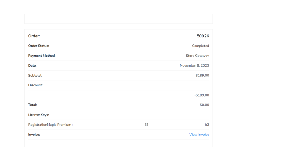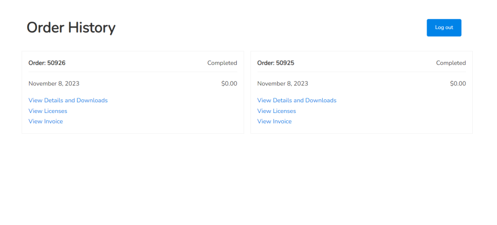 Instead, go to the Order History page to retrieve your License Key. To accomplish this, sign into your account and use the navigation bar to go to the Order History page. All of your previous purchases are in this section, along with many other options like “View Details and Downloads,” “View Licenses,” and “View Invoice.”