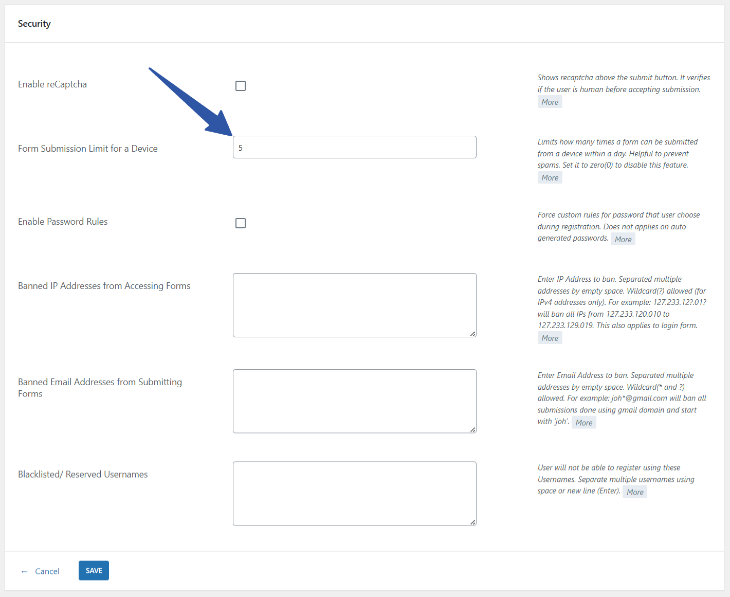 To prevent spam and abuse, RegistrationMagic includes a feature to limit the number of submissions from a single device: