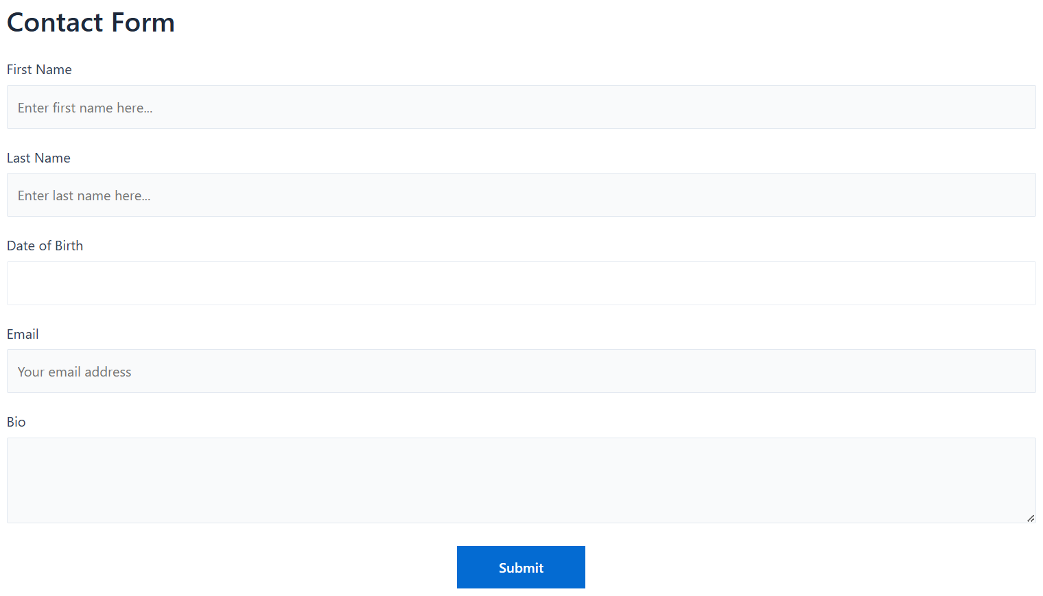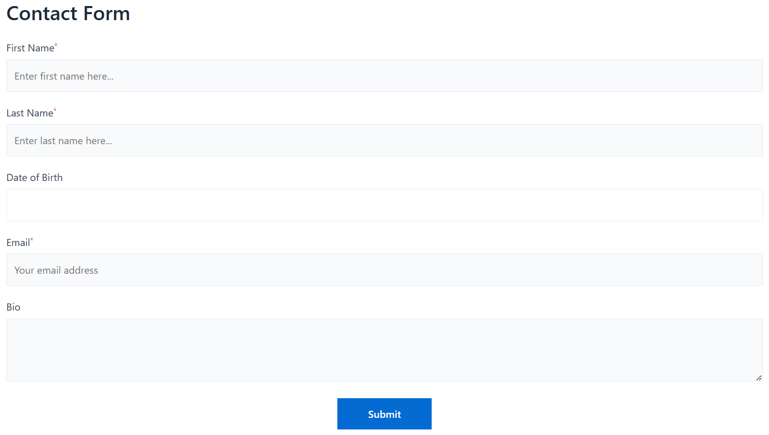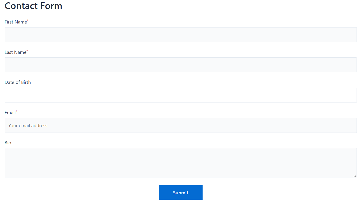 For this demonstration, we have created a generic form with the following fields: