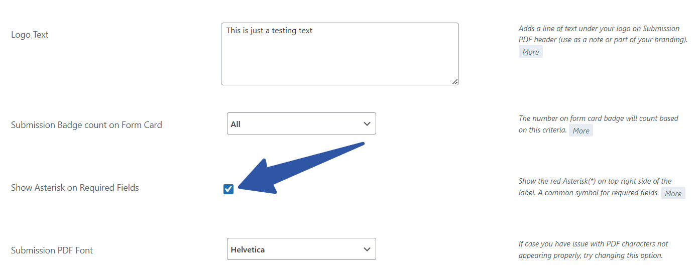 Everything is working perfectly now. There’s one more thing – many folks do not want the red asterisks to appear on their forms. RegistrationMagic has an option to serve them as well. We go to “Global Settings” —> “General Settings” and scroll down the page. There’ll be an option that says “Show Asterisk on Required Fields”.